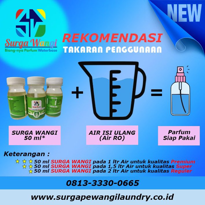 Surga Wangi Bibit Parfum dengan teknologi nano encapsulated perfume. (mikro capsule) adalah Solusi yang praktis, tinggal dicampur air langsung siap dipakai.